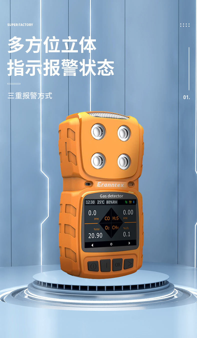 采用2.31英寸高清彩屏實(shí)時(shí)顯示,選用進(jìn)口知名品牌的氣體傳感器,主要檢測(cè)原理有:電化學(xué)、紅外、催化燃燒、熱導(dǎo)、PID光離子等。先進(jìn)的電路設(shè)計(jì)、成熟的內(nèi)核算法處理,獨(dú)特的外形設(shè)計(jì),取得了多項(xiàng)軟件著作專利和外觀專利。