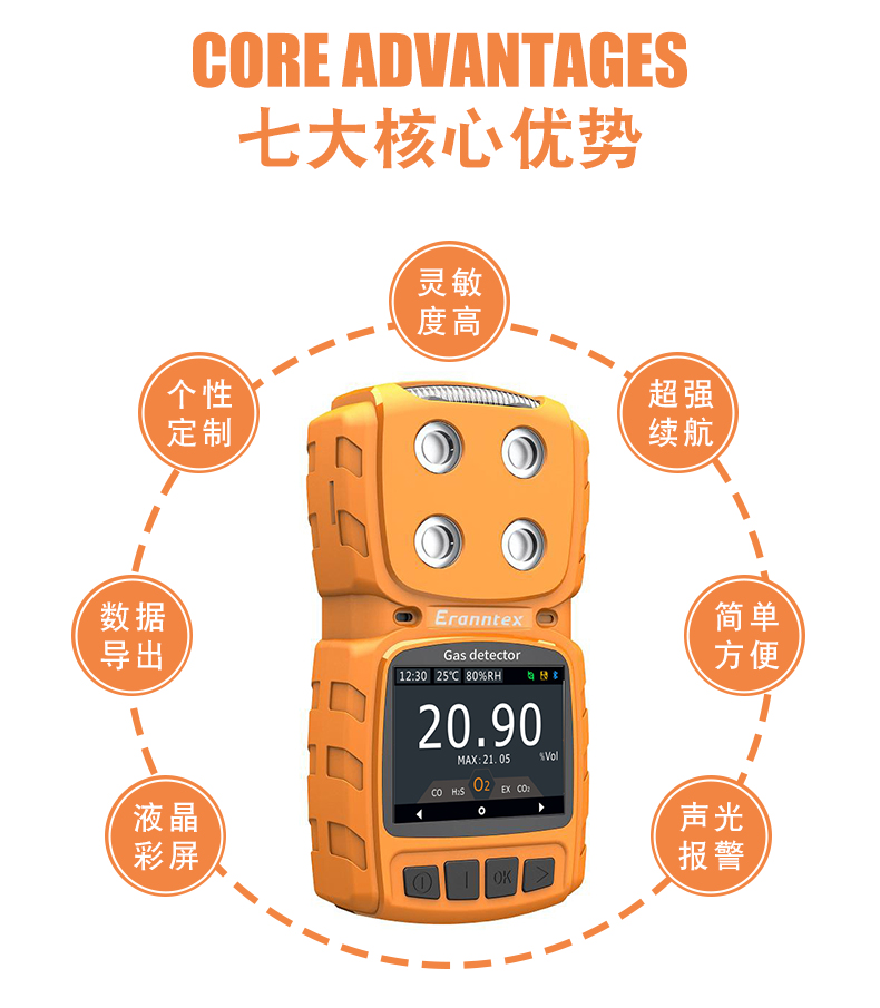 采用2.31英寸高清彩屏實(shí)時(shí)顯示,選用進(jìn)口知名品牌的氣體傳感器,主要檢測(cè)原理有:電化學(xué)、紅外、催化燃燒、熱導(dǎo)、PID光離子等。先進(jìn)的電路設(shè)計(jì)、成熟的內(nèi)核算法處理,獨(dú)特的外形設(shè)計(jì),取得了多項(xiàng)軟件著作專利和外觀專利。